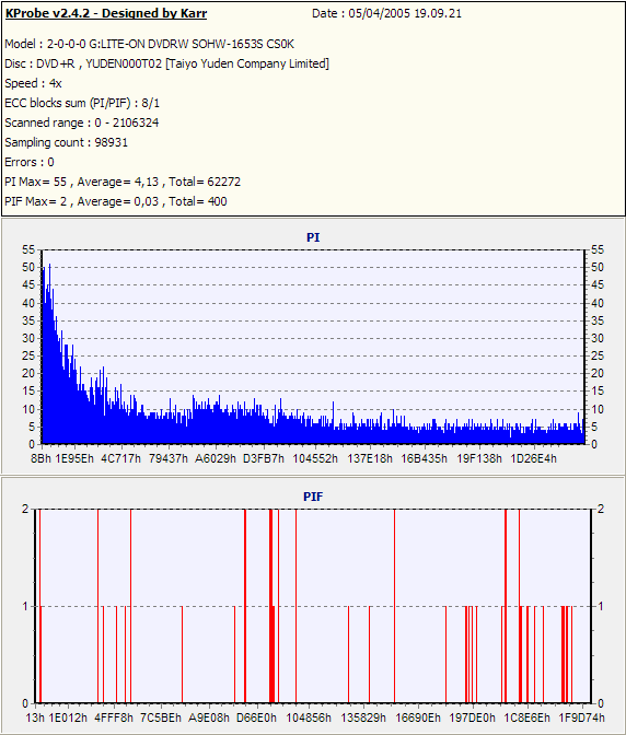 Testing software is K-Probe 2, reading speed is 4x maximum. Wider