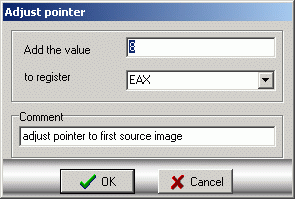 end of the list. Clicking on Scalar instructions|Adjust pointer, the following